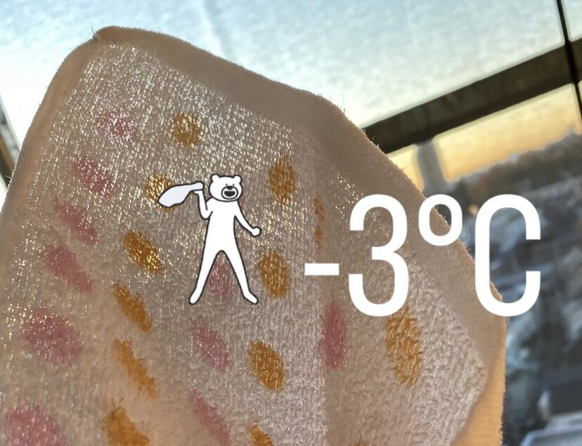 濡れタオルが凍った〜!と、ハイチュウさんの