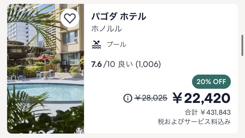 え〜1泊だよ〜昔、この料金でハワイに行けたかと