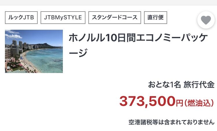ちょ〜高い時期のハワイの料金かと