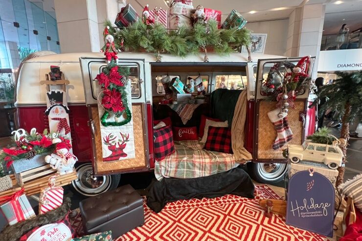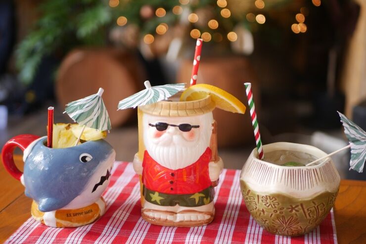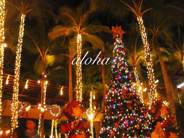 ハワイのクリスマスを感じる装飾の中、
