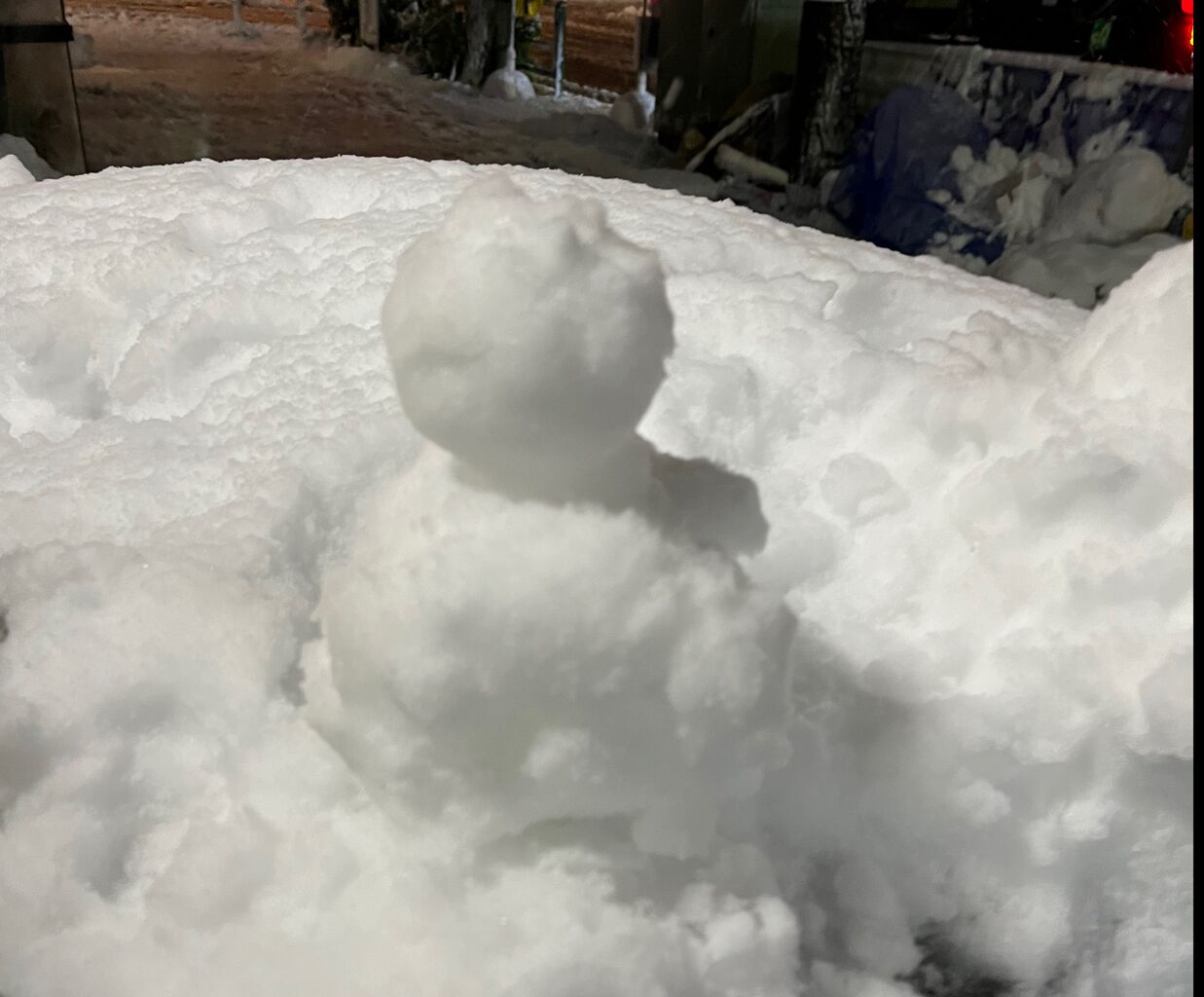 雪かきの合間にミニ雪だるま作りました