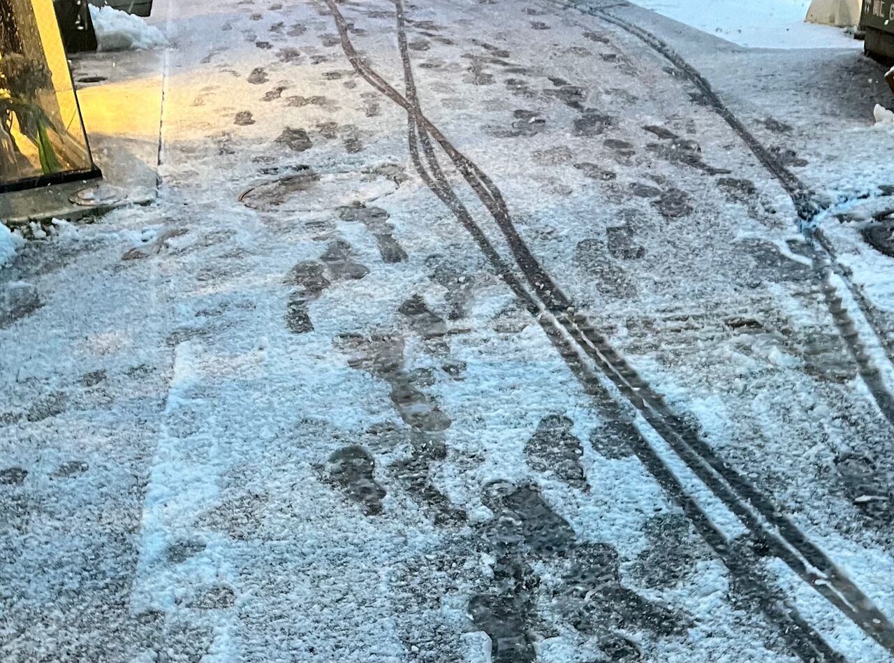 雪かきしないと、ツルツルになるんです