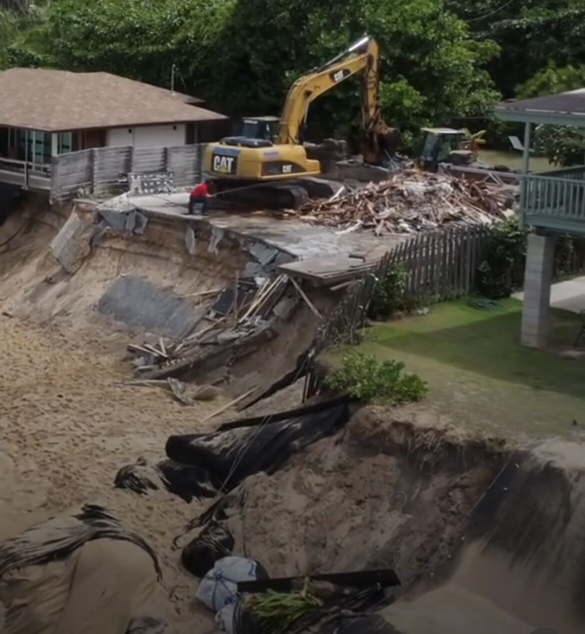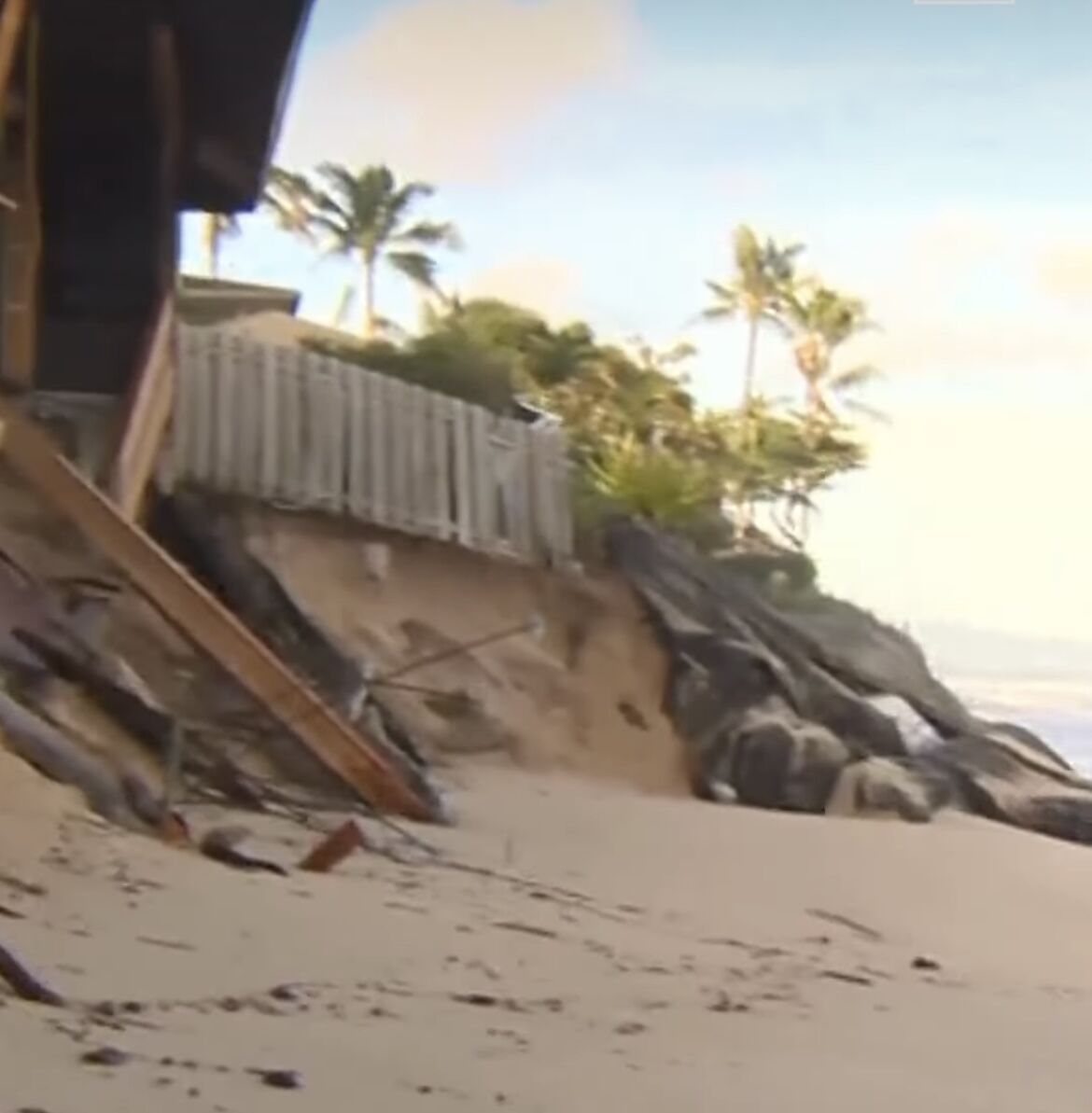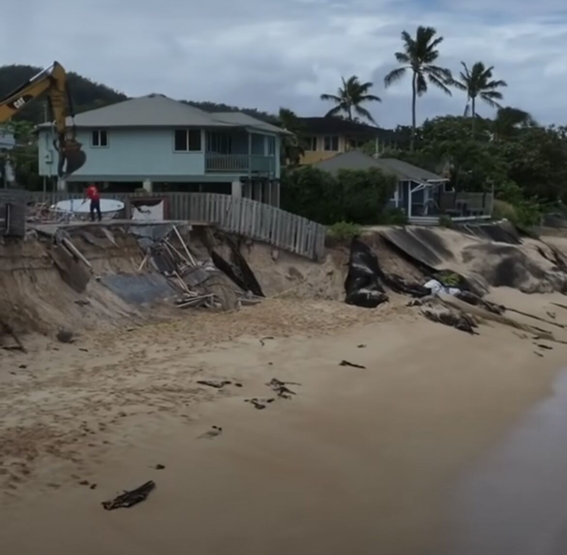 どこかのビーチでも家が崩壊していた。
