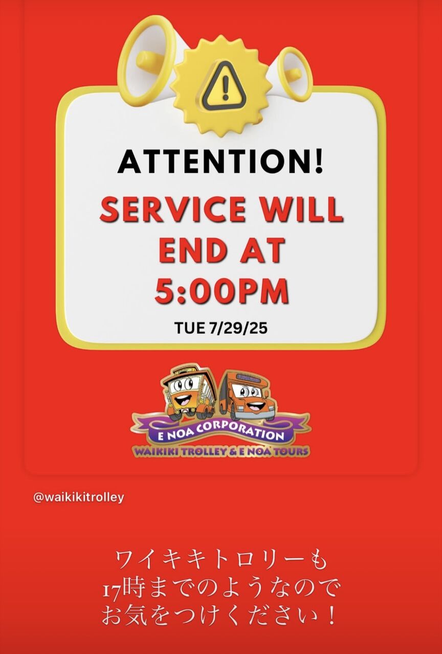 ハワイの電車も運休、バスも運休と。