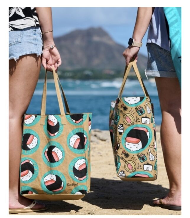 人気のスパムむすび柄を使った「洗える紙袋」、