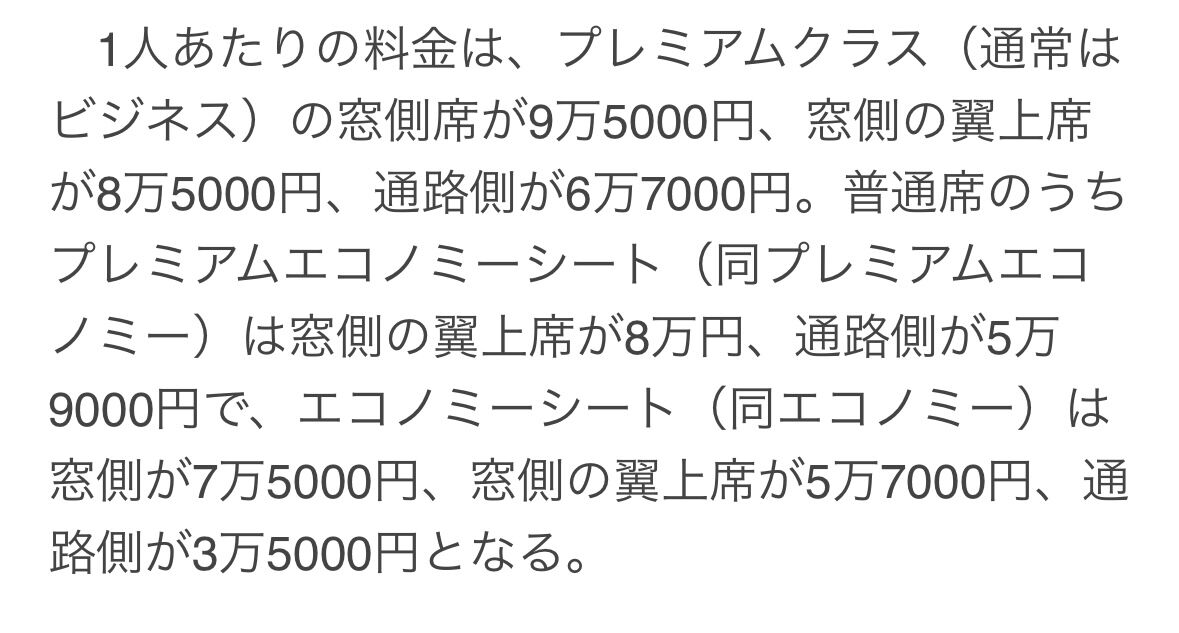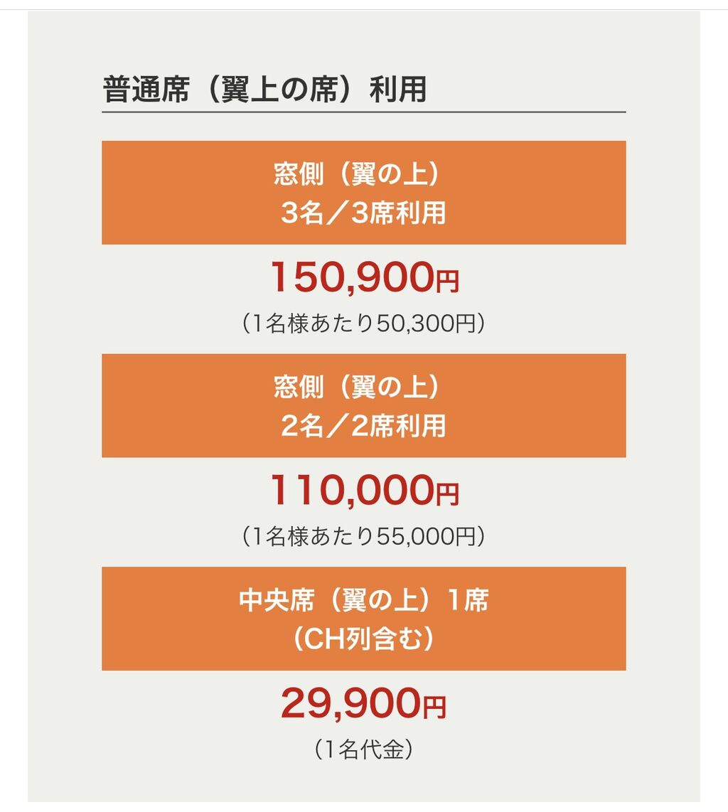 (HPから、他にクラスJ、普通席がありました)