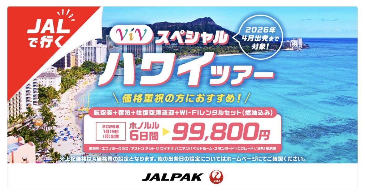 ホノルル6日間、99,800円!
