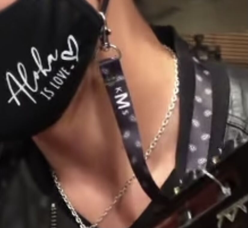 マスクにヒモを付けてますね!