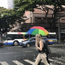 私は傘の内側が、青空で外側が黒のMoMAの傘を持っている自分だけ、雨の日は青空ちょっと前、知り合いからレインボーのビニール傘をさしている人を見かけたんだけど、キラキラしていてキレイだったよ〜なんて話を聞いた。へ〜レインボーの傘か〜傘をさしていると、ちょっとウ ...